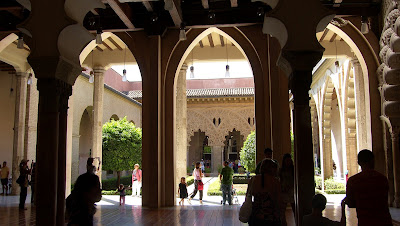 L'Aljaferia és un palau que comença sent omeia, d'aquí les semblances que trobareu amb Granada, continua sent cristià, amb un gòtic primerenc i unes últimes sales (les utilitzades pels reis catòlics) ja isabel·lines, i que a partir de la seua reconstrucció (durant molts anys va estar fet una pena, mig en runes) és la seu del govern d'Aragó.